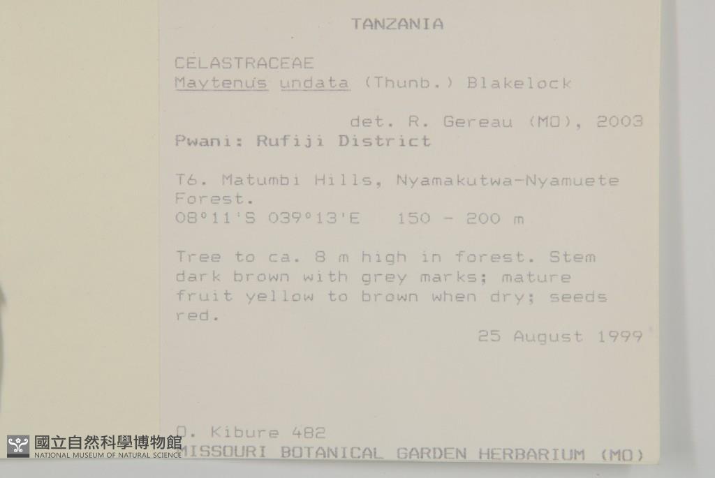 Locality:Tanzania、Pwani Rufiji District. T6. Matumbi Hills, Nyamakutwa-Nyamuete Forest.
