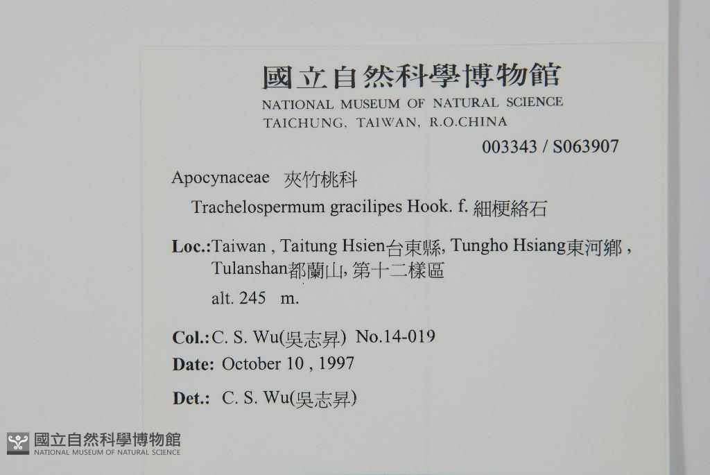 Scientific Name: Trachelospermum gracilipes Hook. f.