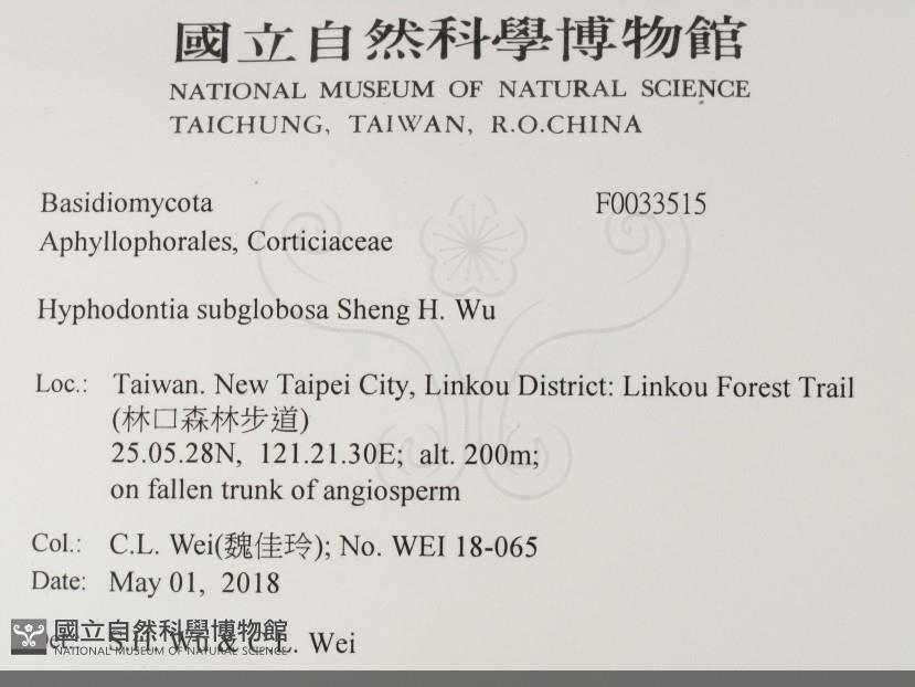 Hyphodontia subglobosa Sheng H. Wu