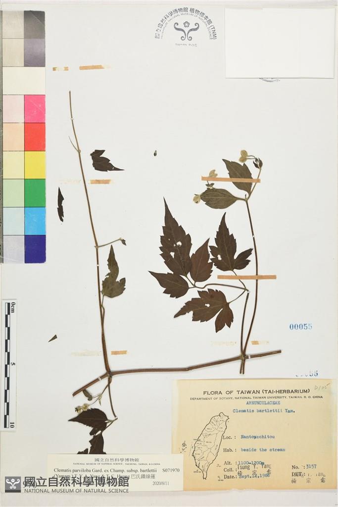 Scientific Name: Clematis parviloba Gard. ex Champ. subsp. bartlettii (Yamam.) T.Y.A. Yang & T.C. Huang