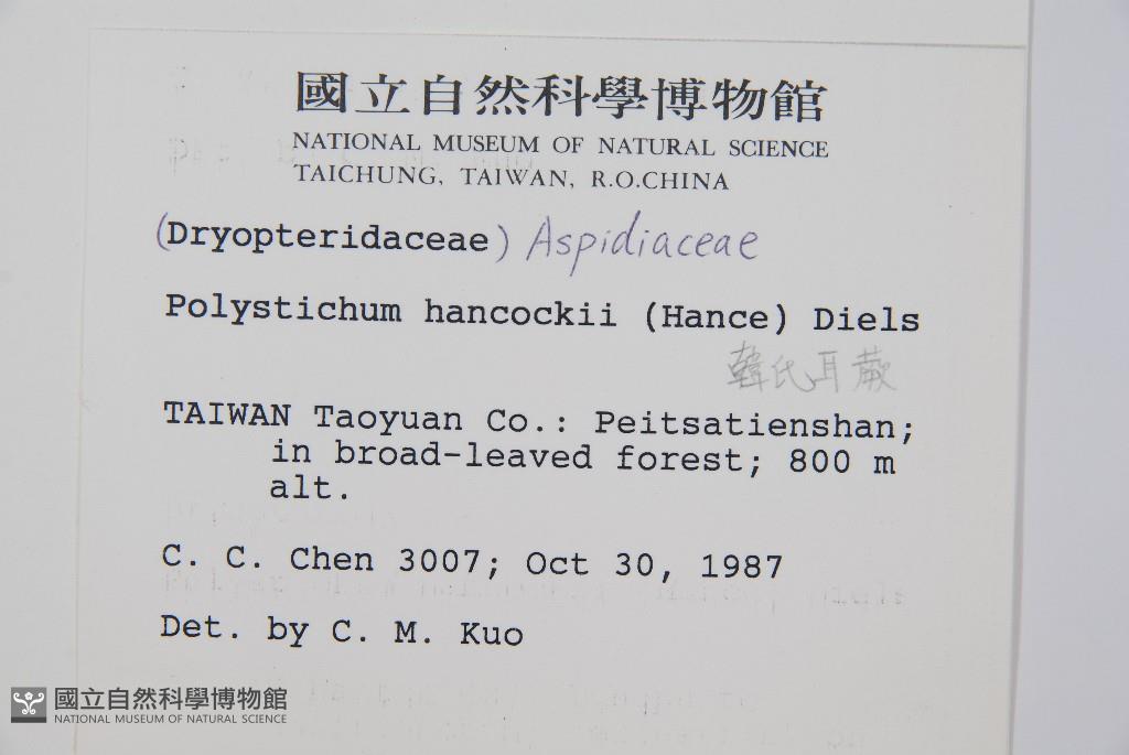 Scientific Name: Polystichum hancockii (Hance) Diels