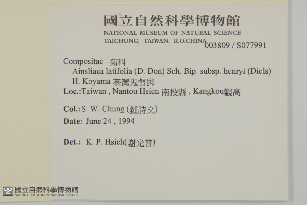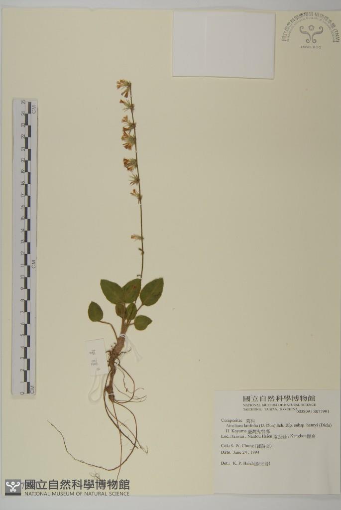 Scientific Name: Ainsliaea latifolia (D. Don) Sch. Bip. subsp. henryi (Diels) H. Koyama