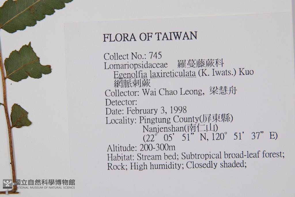 Scientific Name: Egenolfia laxireticulata (Iwats.) Kuo