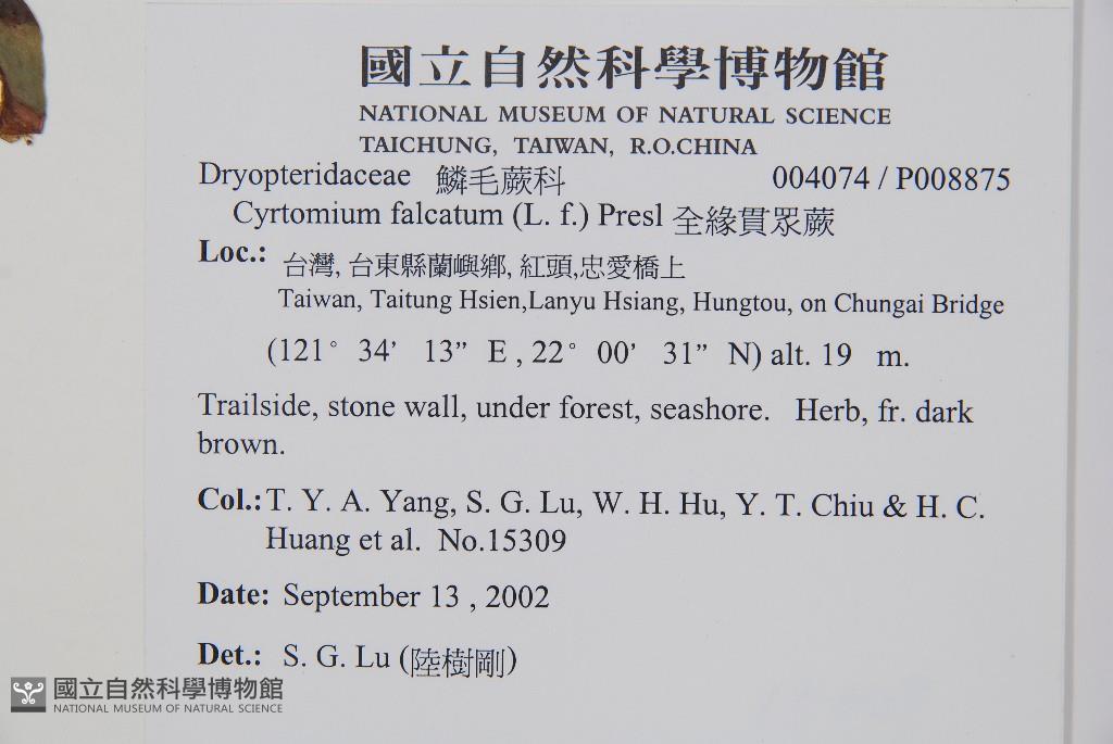 Scientific Name: Cyrtomium falcatum (L. f.) Presl subsp. australe S. Matsumoto