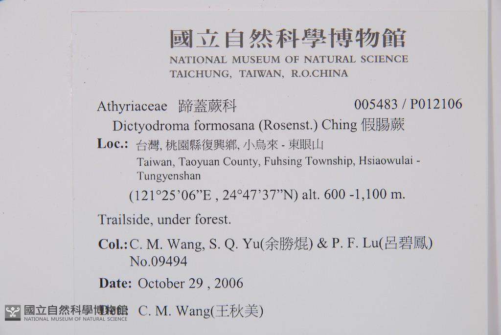 Collector:C. M. Wang, S. Q. Yu(余勝焜) & P. F. Lu(呂碧鳳)