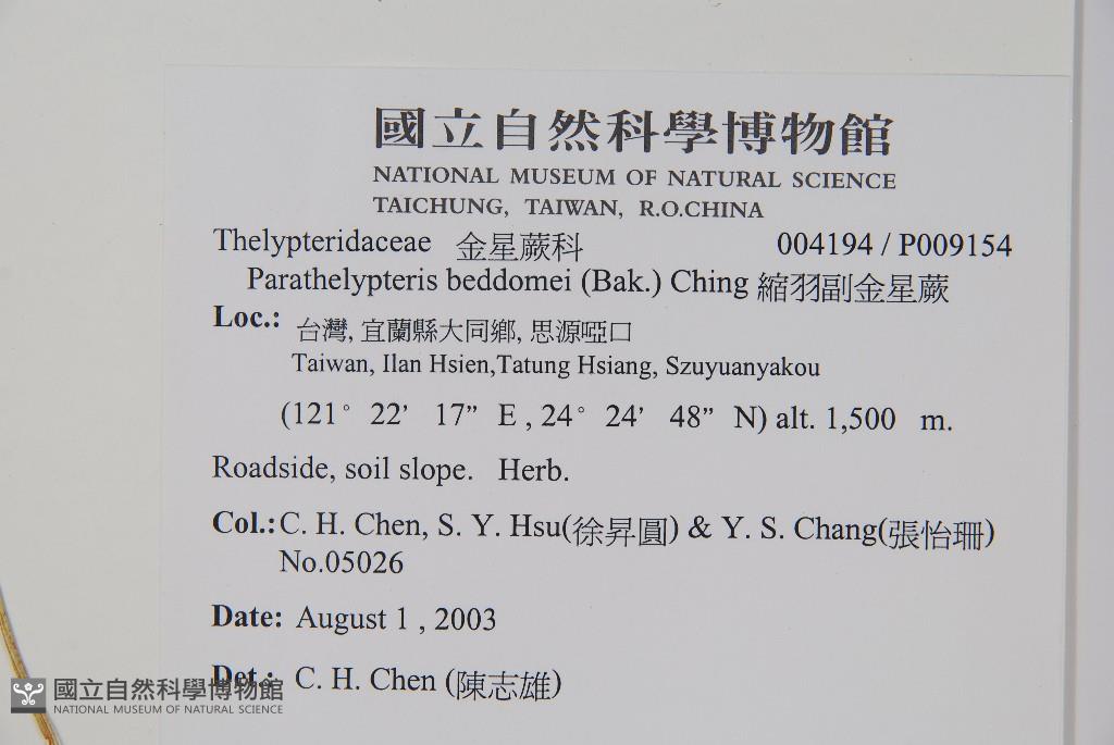 Scientific Name: Parathelypteris beddomei (Bak.) Ching