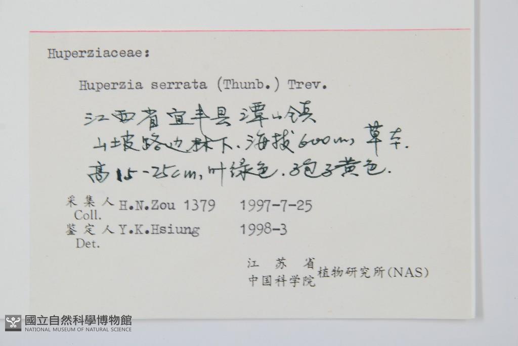 Scientific Name: Huperzia serrata (Thunb.) Trevis.