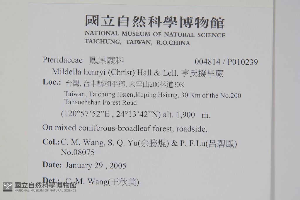 Collector:C. M. Wang, S. Q. Yu(余勝焜) & P. F.Lu(呂碧鳳)