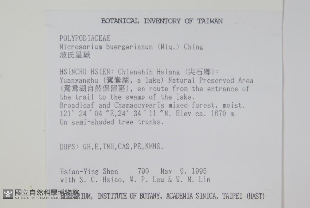 Collector:H. Y. Shen, S. C. Hsiao, W. P. Leu & W. M. Lin