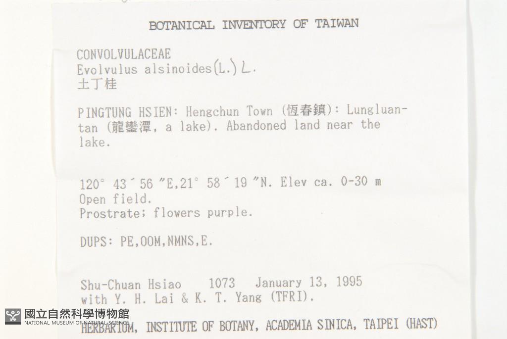 Collector:S. C. Hsiao, Y. H. Lai & K. T. Yang