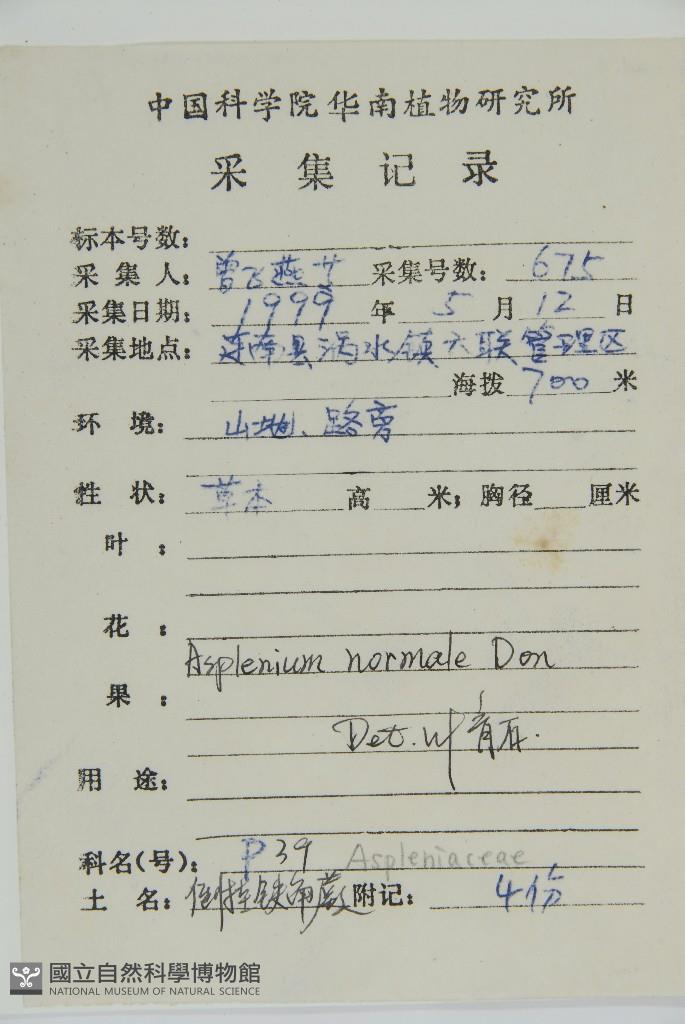 Scientific Name: Asplenium normale Don