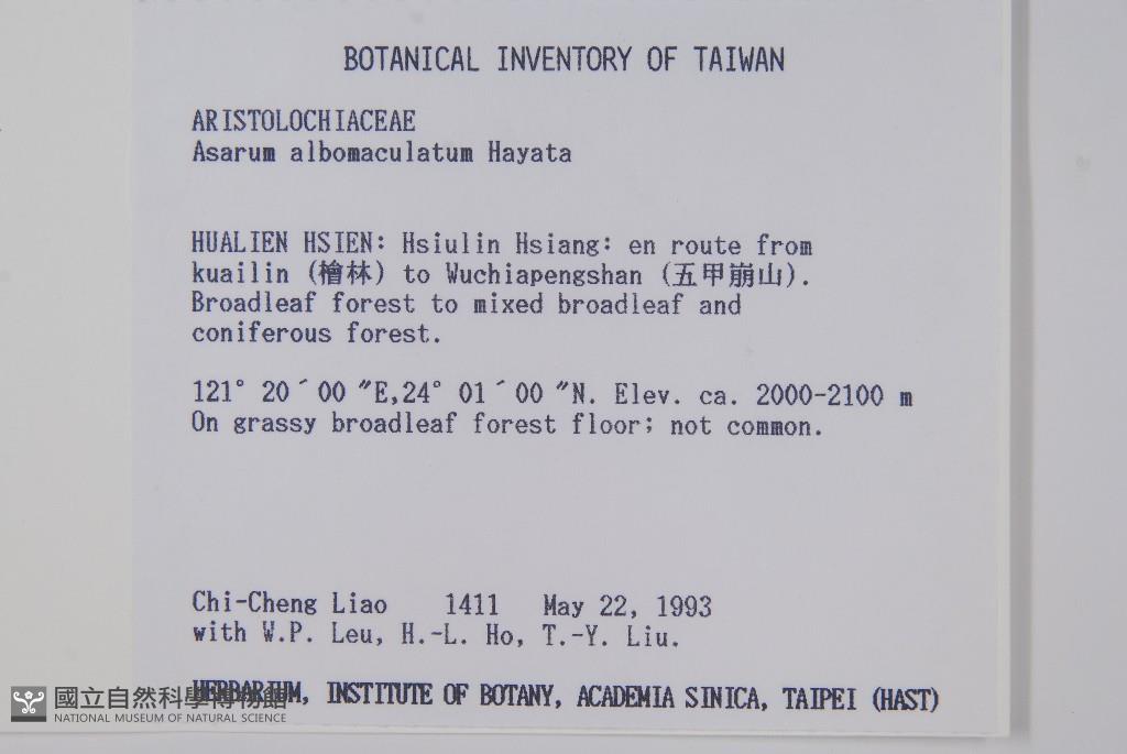 Collector:C. C. Liao, W. P. Leu, H. L. Ho & T. Y. Liu