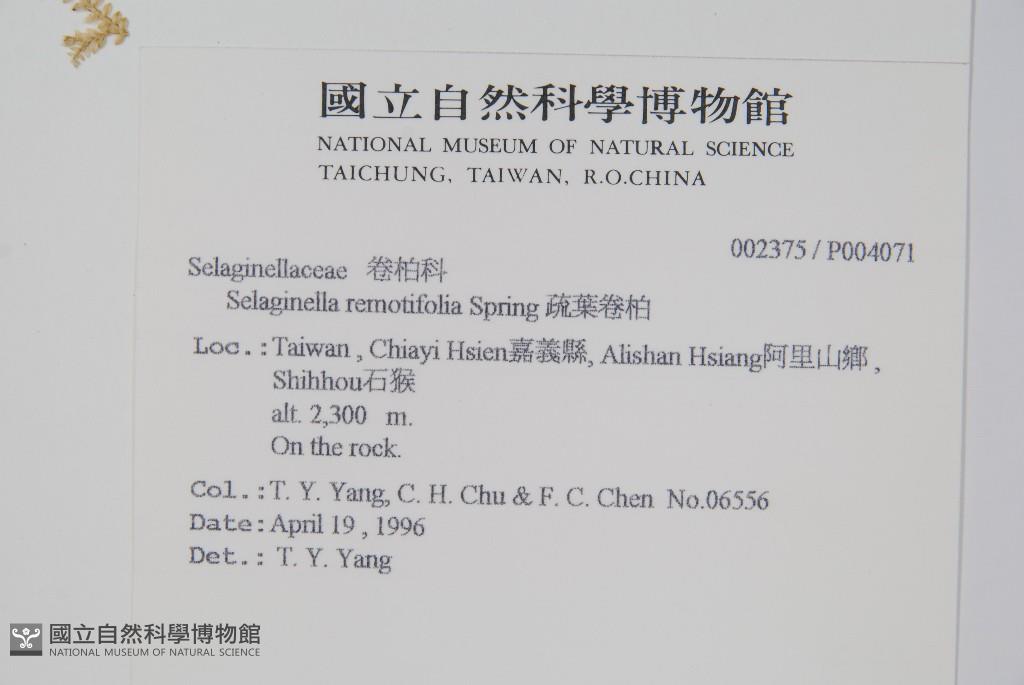 Collector:T. Y. Yang, C. H. Chu & F. C. Chen