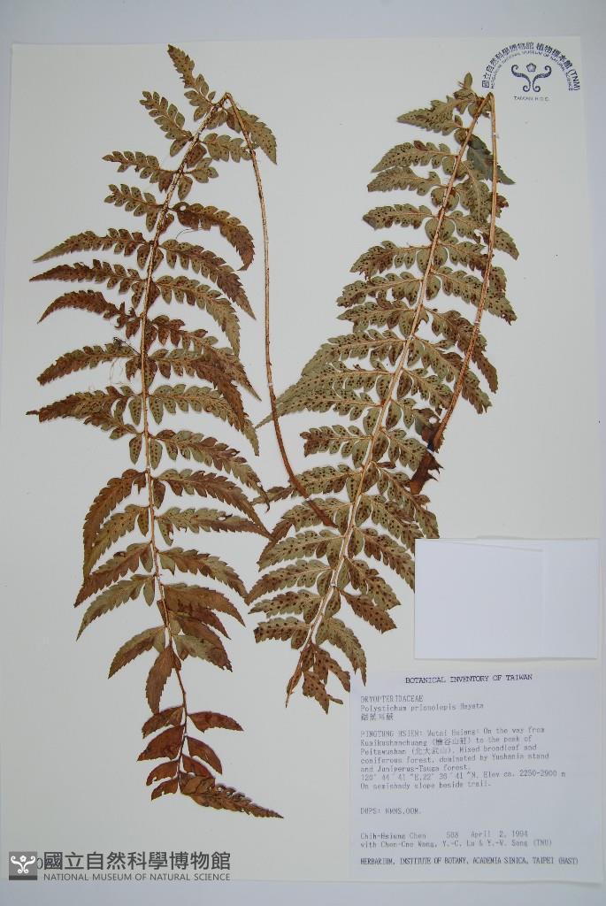 Scientific Name: Polystichum prionolepis Hayata