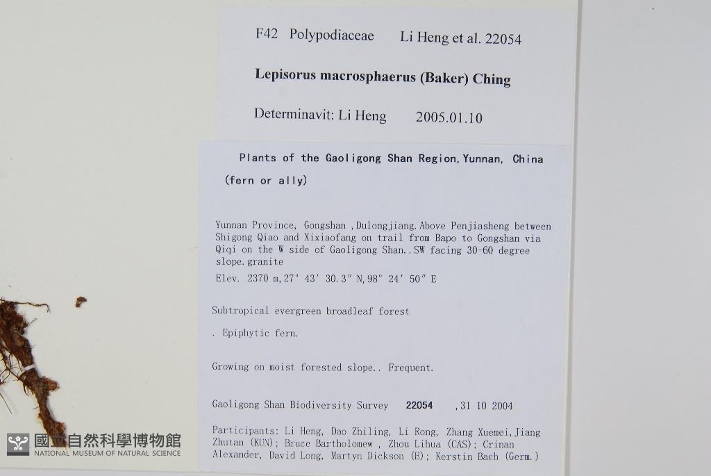 Scientific Name: Lepisorus macrosphaerus (Bak.) Ching
