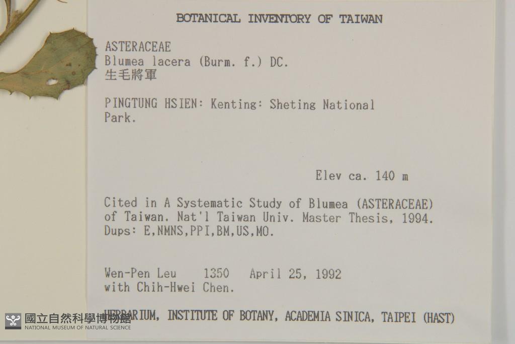 Collector:W. P. Leu & C. H. Chen