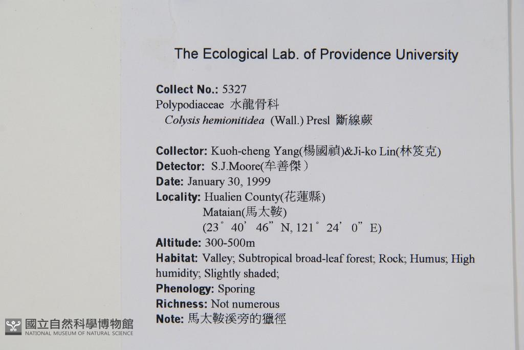 Collector:Kuoh-Cheng Yang (楊國禎) & Jei-Ker Lin (林笈克)