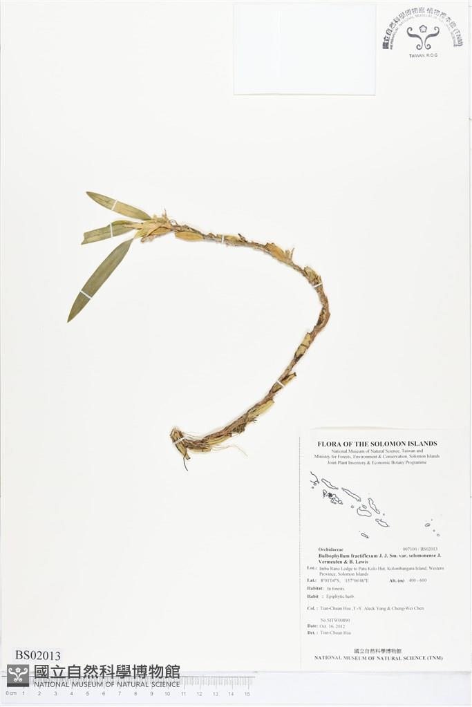 Scientific Name: Bulbophyllum fractiflexum J. J. Sm. var. solomonense J. Vermeulen & B. Lewis