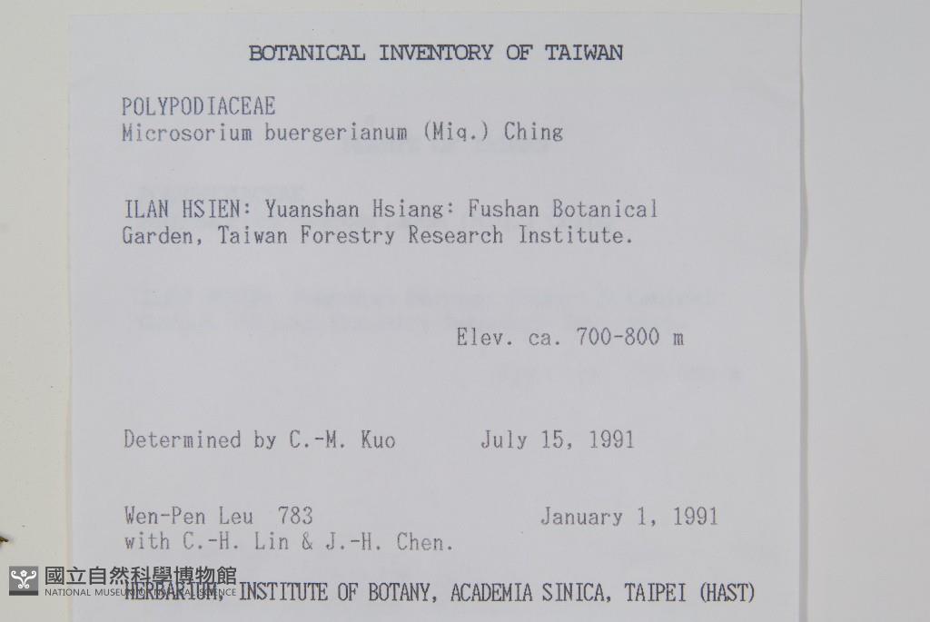 Collector:W. P. Leu, C. H. Lin & J. H. Chen