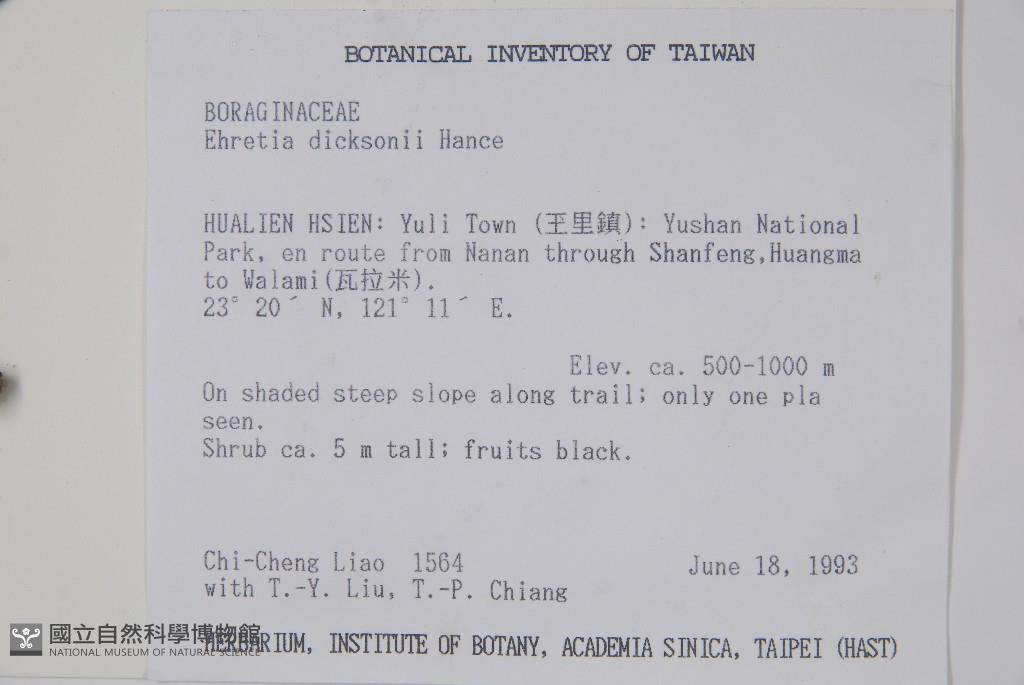 Collector:C. C. Liao, T. Y. Liu & T. P. Chiang