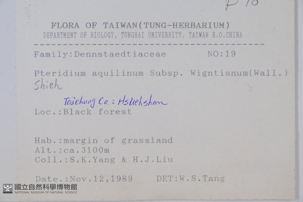 Scientific Name: Pteridium aquilinum (L.) Kuhn subsp. wightianum (Wall.) Shieh