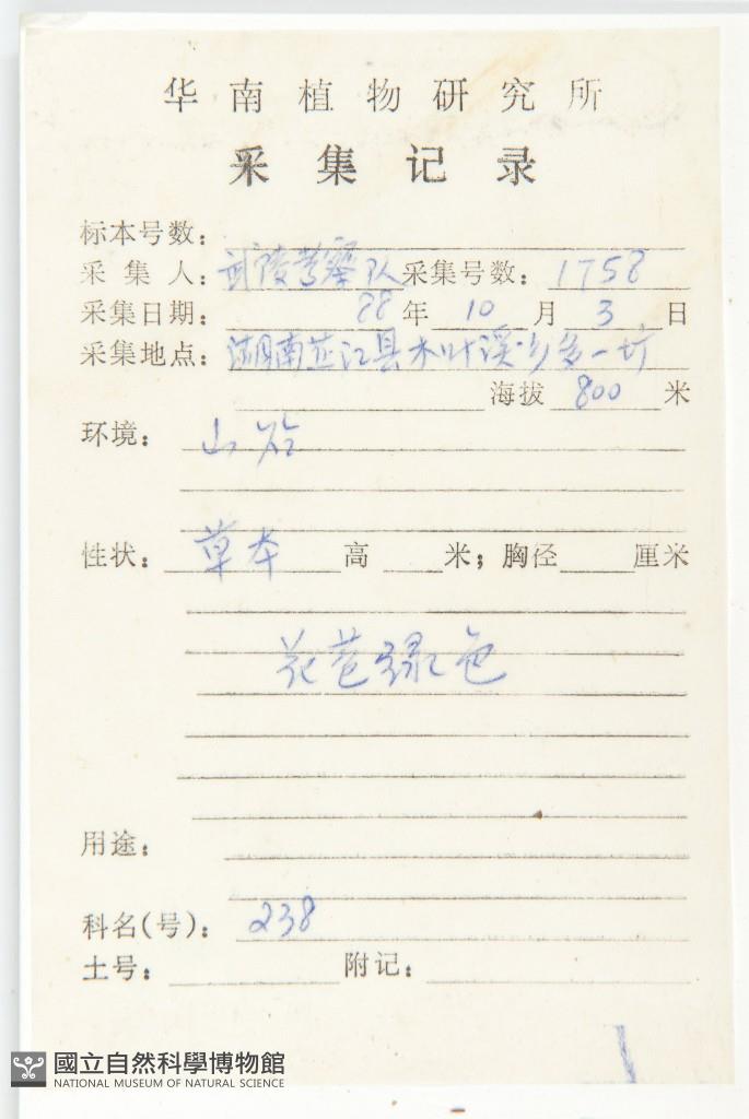 Collector's No.:武01758