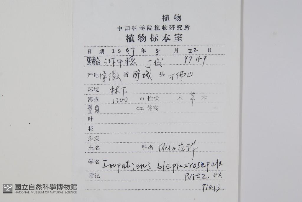 Scientific Name: Impatiens blepharospala Pritz. & Diels