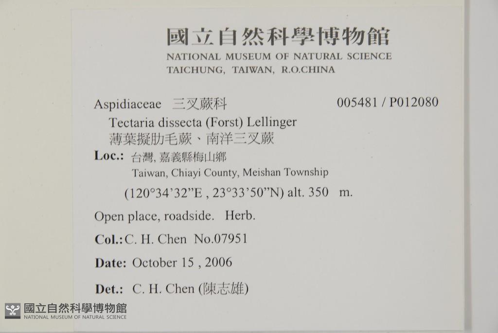 Scientific Name: Tectaria dissecta (Forst) Lellinger