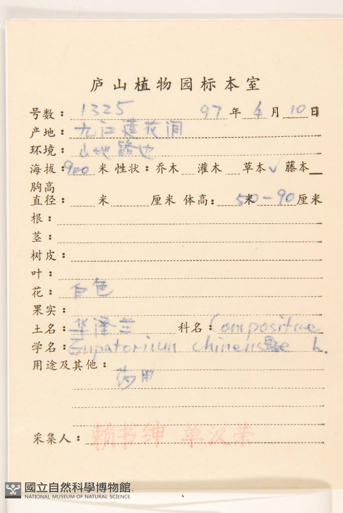 Collector:S. S. Lai & H. R. Shan