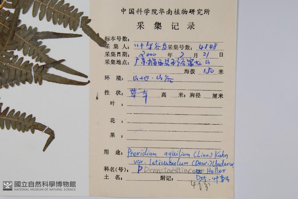 Scientific Name: Pteridium aquilinum (L.) Kuhn var. latiusculum (Desv.) Underw.