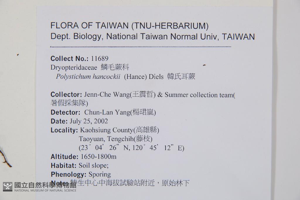 Collector:Jenn-Che Wang (王震哲), & Summer Collection Team (暑期採集隊)