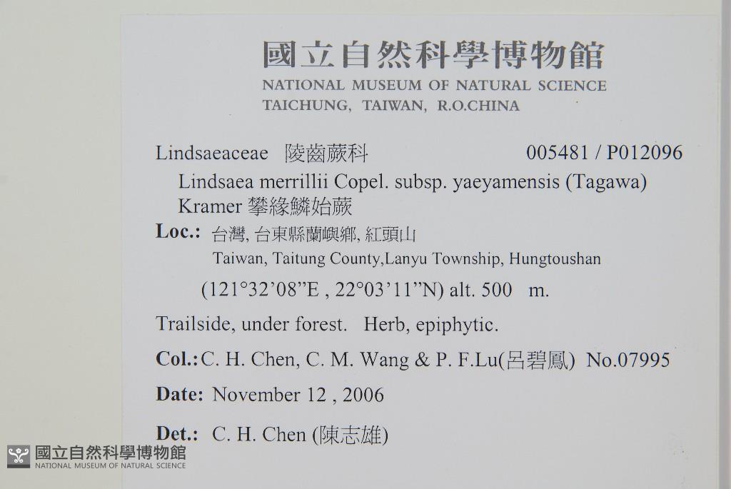 Scientific Name: Lindsaea merrillii Copel. subsp. yaeyamensis (Tagawa) Kramer