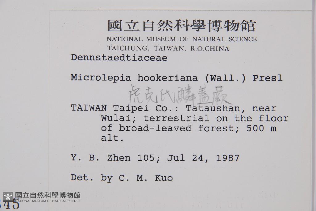 Scientific Name: Microlepia hookeriana (Wall. ex Hook.) Presl