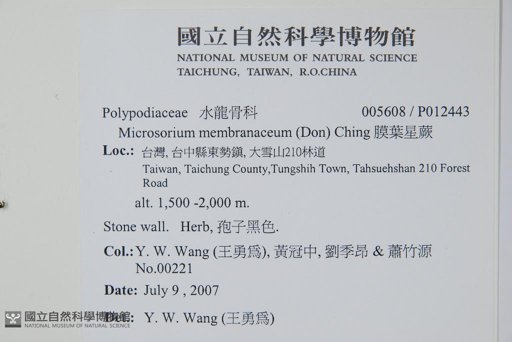 Collector:Y. W. Wang (王勇為), 黃冠中, 劉季昂 & 蕭竹源