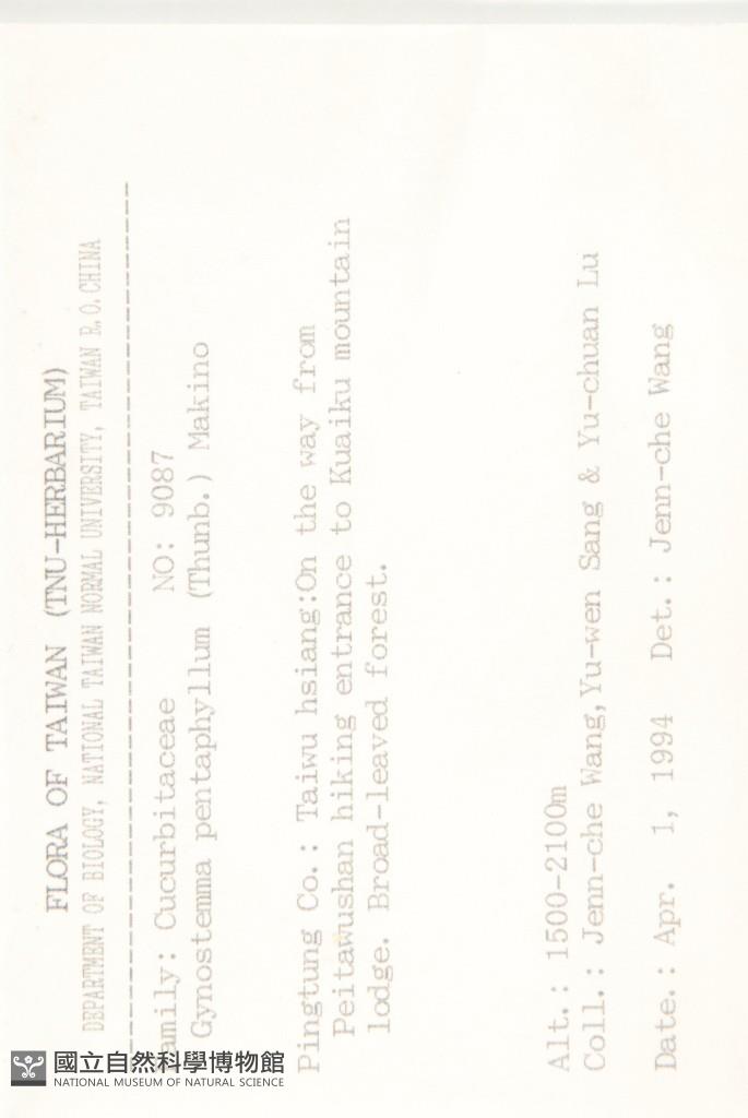 Collector:J. C. Wang, Y. W. Sang & Y. C. Lu