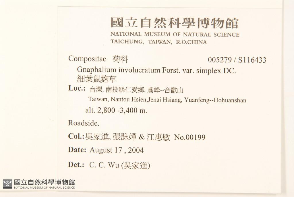 Collector:Chia-Chin Wu (吳家進), Yung-Chan Chang (張詠嬋) & Hui-Ming Chiang (江惠敏)