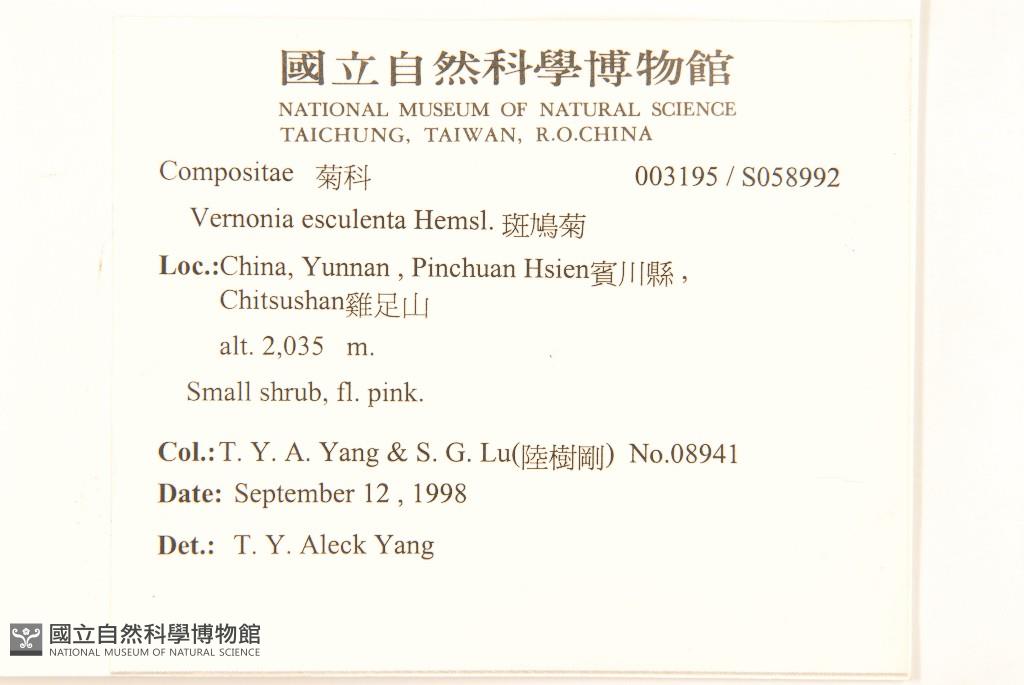 Collector:T. Y. A. Yang & S. G. Lu(陸樹剛)