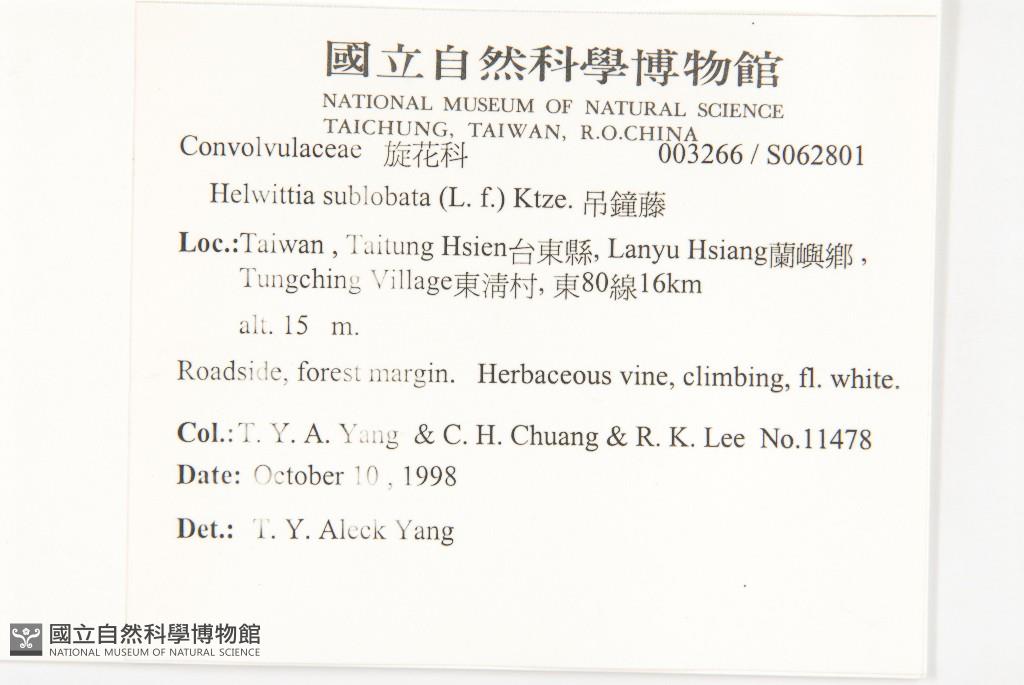Collector:T. Y. A. Yang & C. H. Chuang & R. K. Lee
