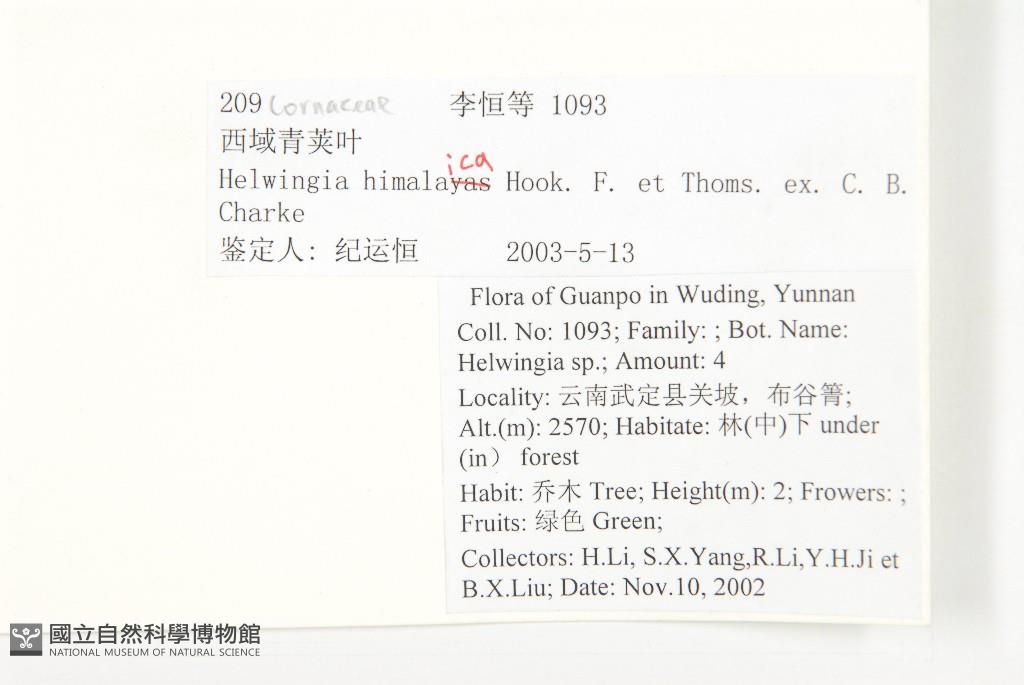 Scientific Name: Helwingia himalaica Clarke