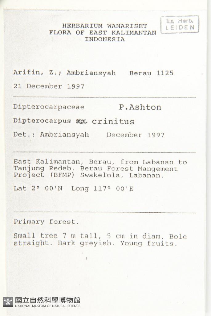 Scientific Name: Dipterocarpus crinitus Dyer