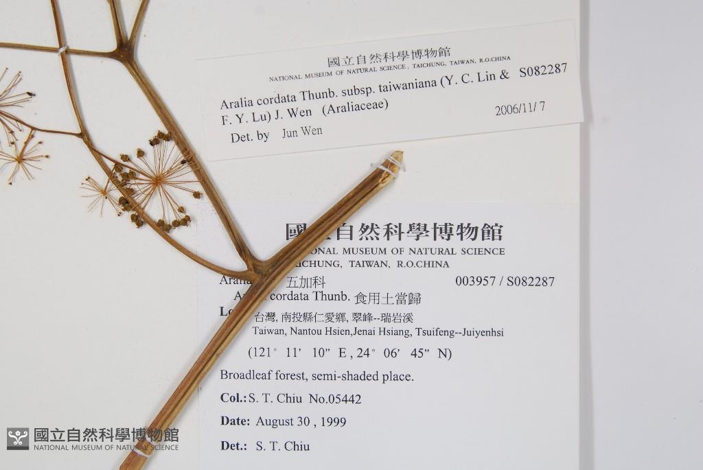 Scientific Name: Aralia cordata Thunb. subsp. taiwaniana (Y. C. Lin & F. Y. Lu) J. Wen