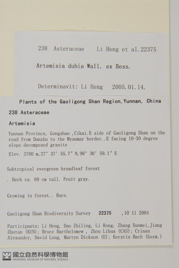 Scientific Name: Artemisia dubia Wall.