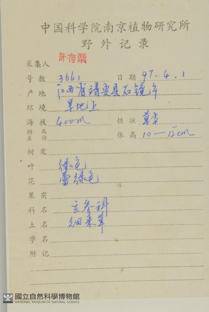 Collector:C. S. Ye(葉存粟)