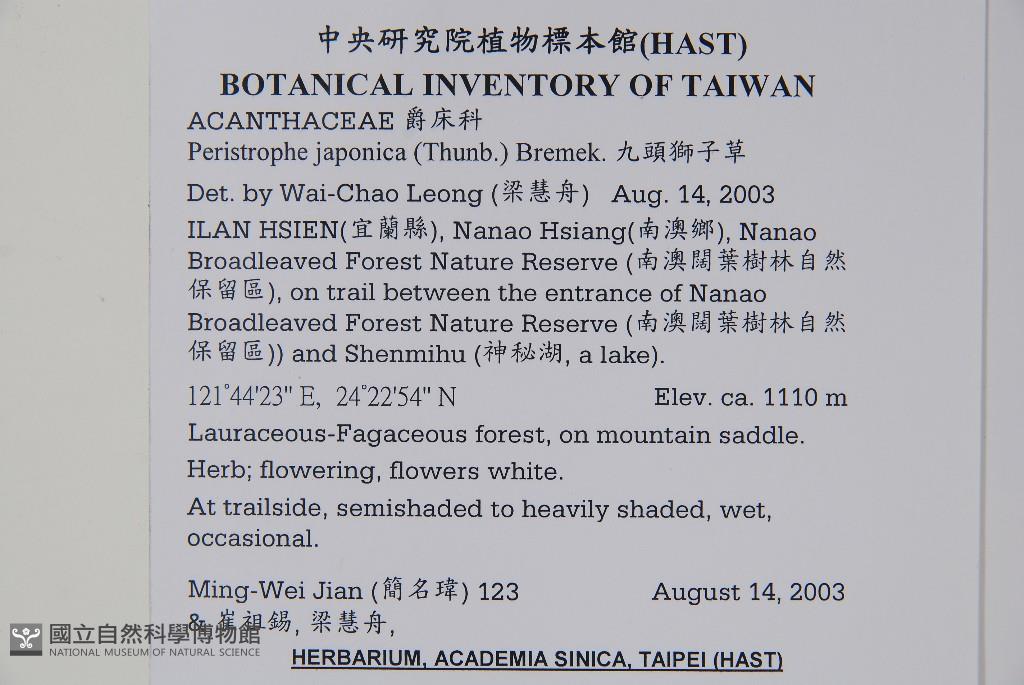 Locality:Ilan County, Nanao Township On trail between the entrance of Nanao Broadleaved Forest Nature Reserve and Shenmihu(a lake)