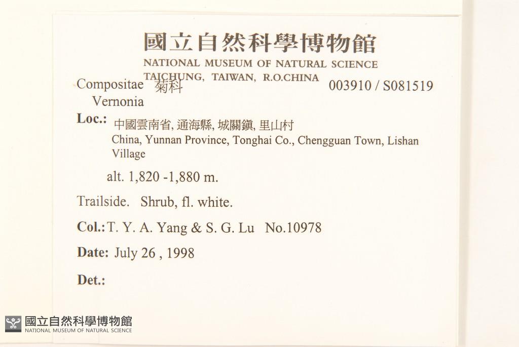 Collector:T. Y. Aleck Yang (楊宗愈), & Shu-Gang Lu (陸樹剛)