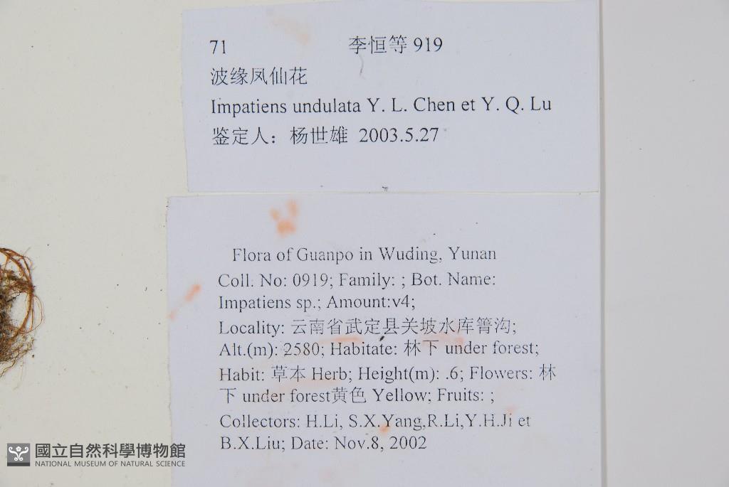Scientific Name: Impatiens undulata Y.L.Chen & Y.Q.Lu