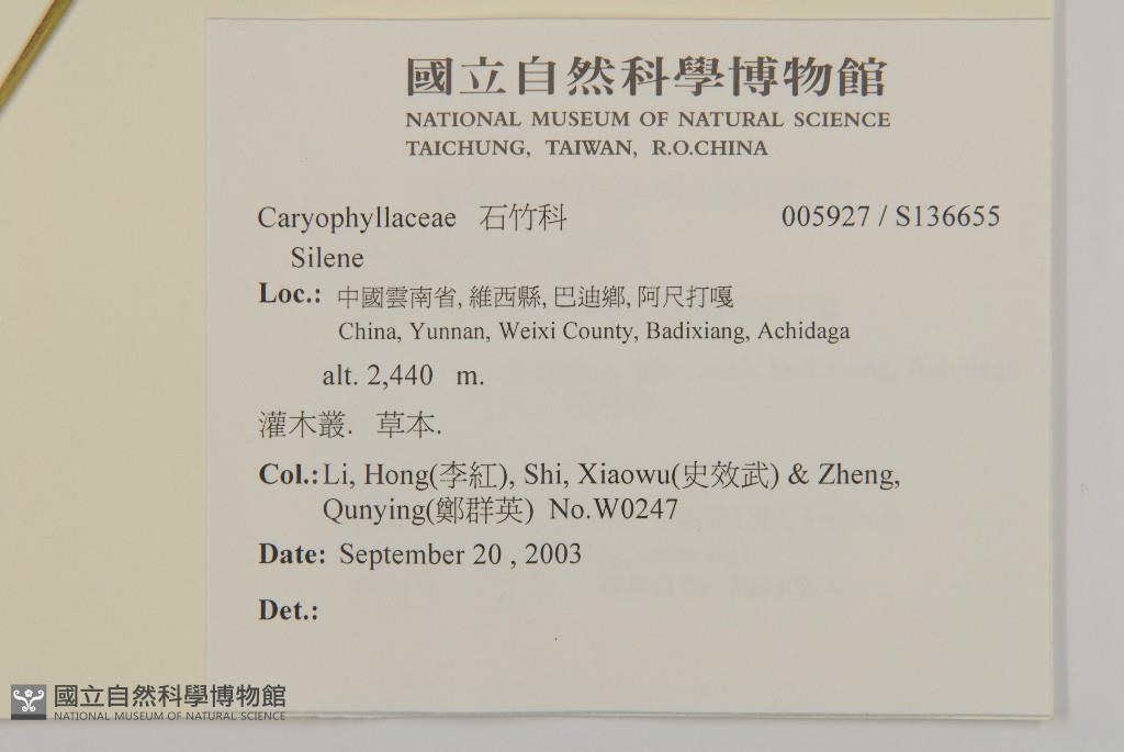 Collector:Hong Li (李紅), Xiao-Wu Shi (史效武) & Qun-Ying Zheng (鄭群英)