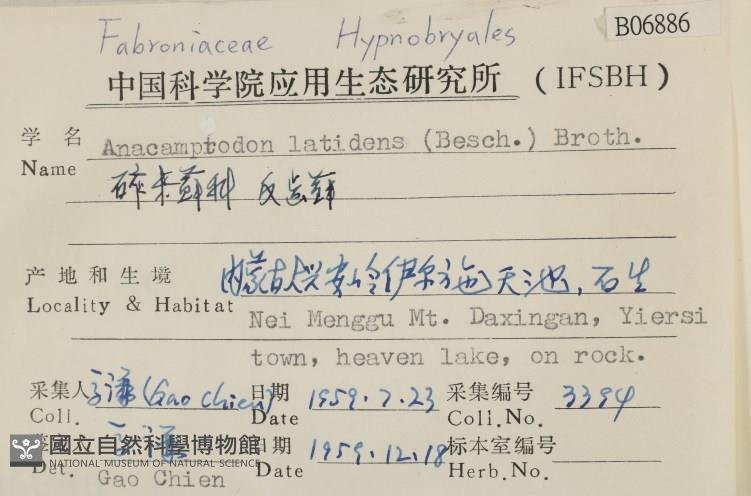 Collection Date:1959/07/23