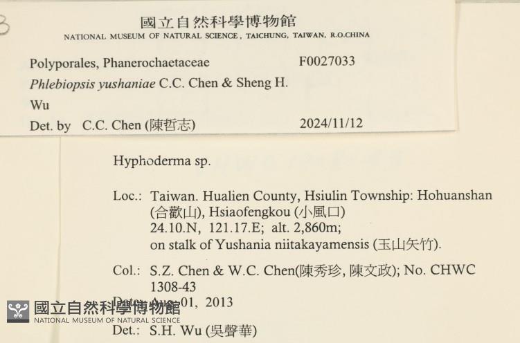 Phlebiopsis yushaniae C.C. Chen & Sheng H. Wu