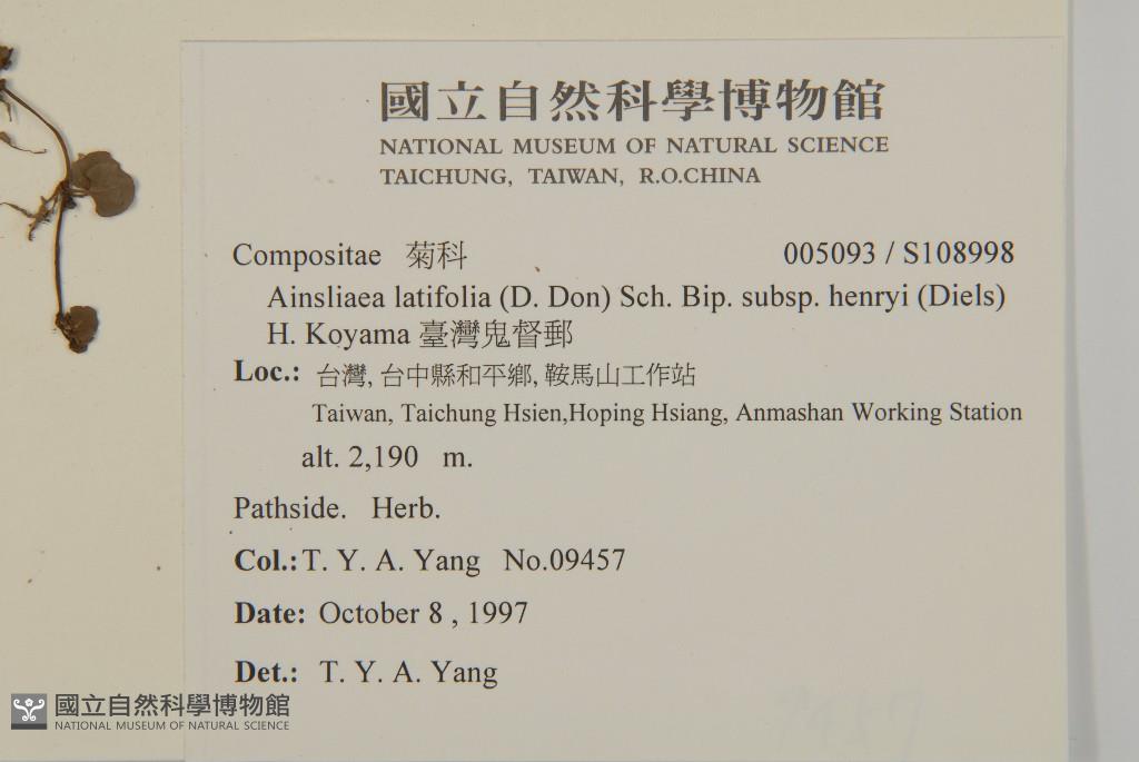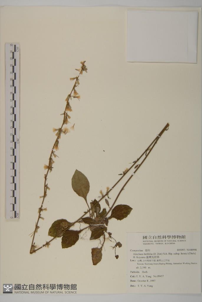 Scientific Name: Ainsliaea latifolia (D. Don) Sch. Bip. subsp. henryi (Diels) H. Koyama